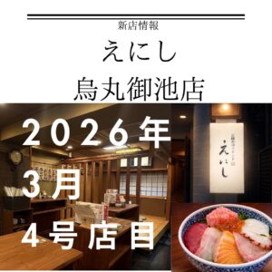 2025年10月に1号店を四条高倉に、 2026年1月に2号店目を四条烏丸にオープンして 早くも3店舗目をオープン「百圓寿司スタンド えにし」 2026年2月3店舗…
